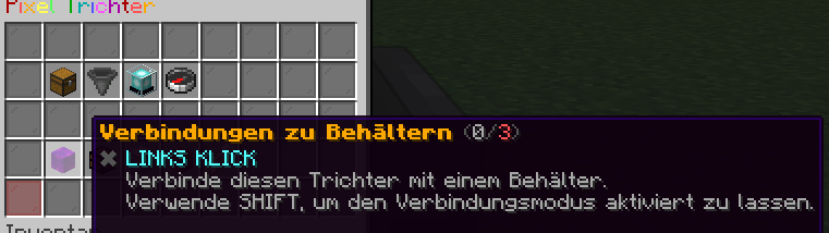 • Der Start: Standardmäßig startet jeder Pixeltrichter mit einem Set von 3 Verbindungen. Das reicht für kleine Farmen oder einfache Koppelungen meist aus.