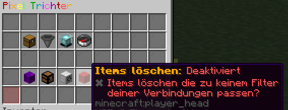 • ❌ Deaktiviert (Standard): Items, die nicht in deine Filter passen, bleiben einfach im Pixeltrichter liegen, bis dieser voll ist. Das System stoppt dann.