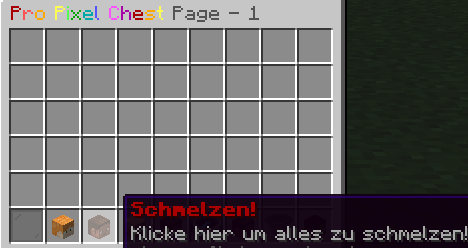 In der Pro Pixel Chest steckt mehr als nur reiner Speicherplatz. Mit der „Schmelzen!“-Funktion (zu finden beim grauen Spielerkopf-Icon im unteren Menü) kannst du deine Erze und Materialien direkt im Inventar verarbeiten.