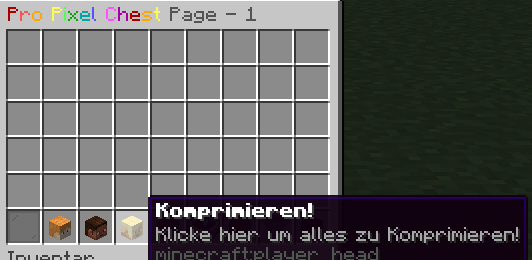 Page - 1), ist die Kiste in übersichtliche Seiten unterteilt. Du kannst bequem durch dein gesamtes Inventar blättern, ohne von tausenden Items gleichzeitig erschlagen zu werden.Sauberes Raster: Jede Seite bietet dir das klassische, vertraute Raster, in dem deine Items sicher und übersichtlich aufbewahrt werden.