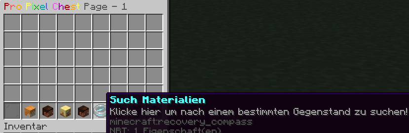 Nutzen: Gib einfach den Namen des gesuchten Items ein. Die Pro Pixel Chest filtert sofort alle Seiten und zeigt dir nur noch die Gegenstände an, die zu deiner Suche passen.