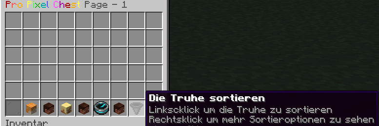 Linksklick (Schnell-Sortierung): Sortiert den gesamten Inhalt der Truhe sofort nach Standard-Kriterien (z. B. Item-ID oder Typ).